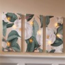 Softly shaded leaves and blooms, with a sweetness you can almost smell! Each panel has 3 warm white LEDs and uses 2 AA batteries (6 batteries total, not included). Printed canvas on solid wood frames. Each panel: 11.75" w x 23.5" h.