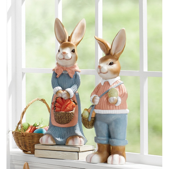 Every bunny in the family is going to love these adorable additions to your Easter décor. Resin. Mom and Dad bunnies range from 7–7 1/4" w x 20" h x 5 1/2–6" d.