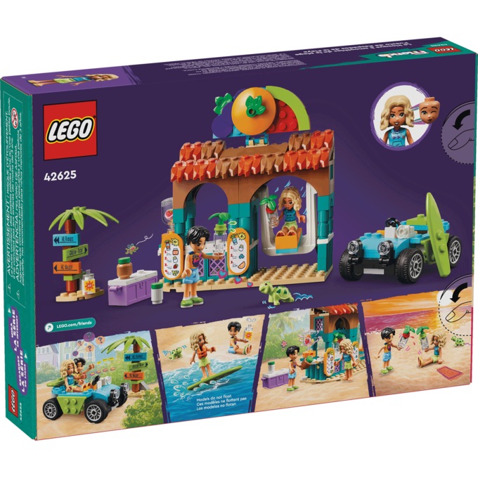 - Kids’ play food set – Girls and boys aged 6+ can enjoy smoothie-making fun at the beach with this LEGO® Friends Beach Smoothie Stand role-play toy, which includes 2 mini-dolls and a turtle figure