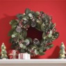 Such a lush look for the season! Natural twigs and vines on a (16.5" diam. ) wire frame; foam berries with faux foliage and pinecones. 25" diam. x 8" d.