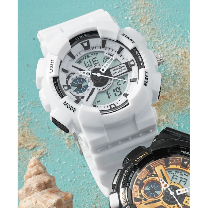 Get reliable timekeeping when playing your favorite sports and on all your outdoor adventures with this supercool watch. 2 1/4" w case; 10" l rubber strap. Water resistant up to 98' (30M).