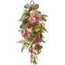 Create a warm welcome throughout the season. Faux florals, greens and vines topped with a burlap bow. Outdoor safe. 8" w x 25" h x 2 1/2" d.