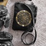 Flat printed bag is adorned with genuine crystals and gemstones. Includes a card to explain design. Zip closure. Adjustable, removable shoulder strap; removable wrist strap. Textile. 6.75" w x 9.25" h.