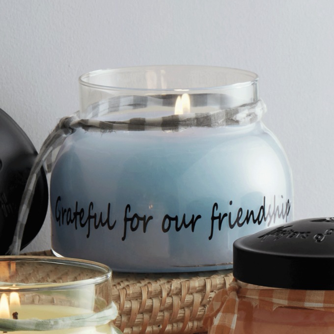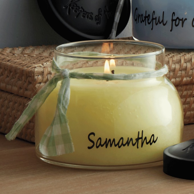 A perfect hostess or birthday gift—and make sure to gift 1 (or 2!) to yourself! Black metal lid with “Keepers of the Light” debossed on top, adorned with pretty paid ribbon. Double wick, in a 22-oz. paraffin wax candle. Approx. 125-hour burn time. 4.75" diam. x 4" h. Made in USA.