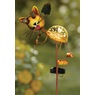Adoring animals with fun facial features, springy limbs and a clear globe on their back bring light and character to your yard. Uses 1 AA rechargeable battery (included). Painted metal. Dog is 11 1/4" w x 37" h x 5 1/4" d. Cat is 10 1/2" w x 37 1/2" h x 6 1/2" d.
